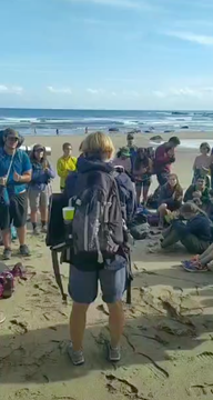 Antes de iniciar la etapa, bajamos a la playa de Deba, donde el Geoparkea Euskal Kostaldea (declarado Geoparque Mundial de la UNESCO) nos tiene preparada una visita guiada por las rocas de los acantilados próximos. Nuestra guía, Naiara, nos explicó de forma muy didáctica la formación del Flysch, el elemento que da personalidad a toda la costa. Gracias a la singular secuencia de estos estratos rocosos, podemos saber más sobre grandes eventos y cataclismos de la historia de la Tierra, como si de un gran libro abierto se tratase: he aquí su gran importancia.