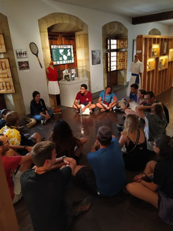 En el Euskal Herria Museoa nos separamos en dos grupos. En el museo nos acercan de una manera muy dinámica los deportes rurales tradicionales que se practican en el País Vasco y los instrumentos musicales comunes de la región. Además de introducirnos a los principales personajes mitológicos de sus bosques y dejarnos con ganas de más. Aunque por el momento nos tendremos que conformar con ver a Toño acarrear dos ‘txingas’ de siete kg cada una cuesta arriba y abajo. Una competición de sokatira a continuación será el cierre de la visita tras la cual nos dispersamos.