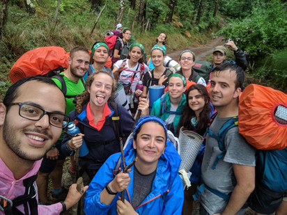 Terriblemente bombardeada en el 1937, hoy en día Gernika es un dinámico núcleo cultural. Pudimos visitar el famoso árbol de Guernica, que en realidad son varios, que es seguramente el más conocido de los árboles de concejo, símbolo de la democracia y figura de la que nos hemos podido informar antes de iniciar la ruta. La lluvia nos ha encontrado haciéndonos una foto en el mural del ‘Guernica’ de Picasso e intentamos huir de ella llegando al polideportivo saltando de soportal en soportal.